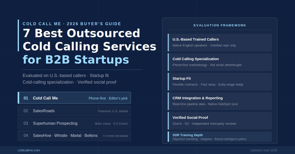 Disclosure: Cold Call Me is one of the services featured in this roundup. Our evaluation framework was applied consistently across all providers. Pricing figures are sourced from publicly available information and verified third-party platforms (Clutch, G2) as of April 2026 and are subject to change. Always confirm current pricing directly with each provider.